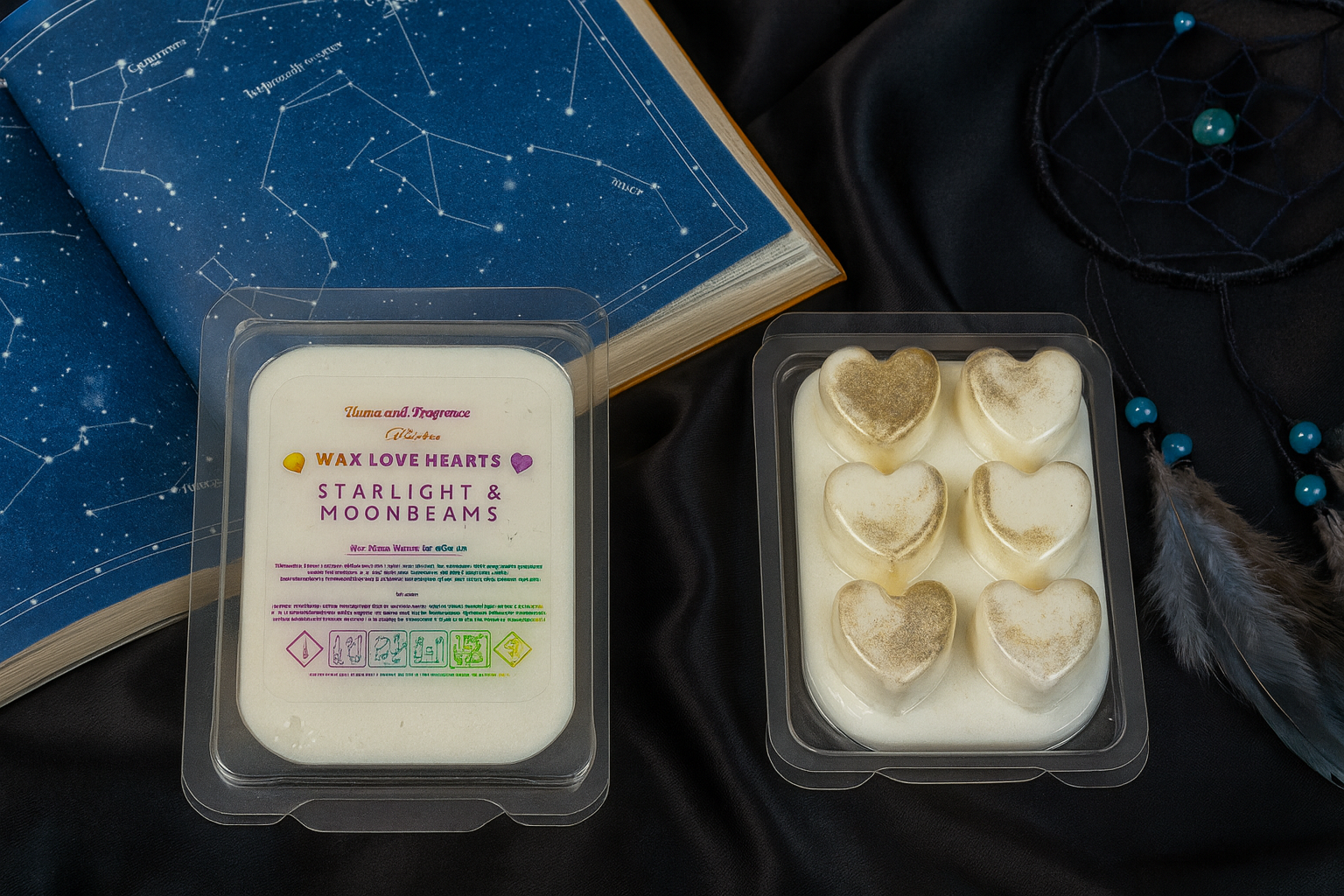 Warm your heart a thousand times over with our Starlight & Moonbeams Love Hearts wax melts. Each pack includes 6 snap-off hearts, carefully hand-poured with natural soy wax and vegan-friendly ingredients, providing a clean, long-lasting burn that turns your space into a festive, starry haven.